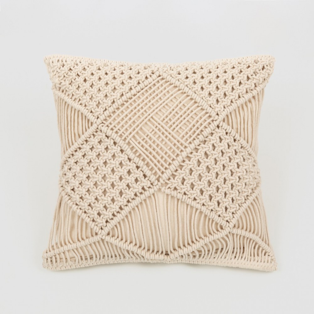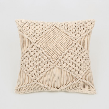 Cojín de algodón 100% modelo macramé Minoto natural de 45x45cm.