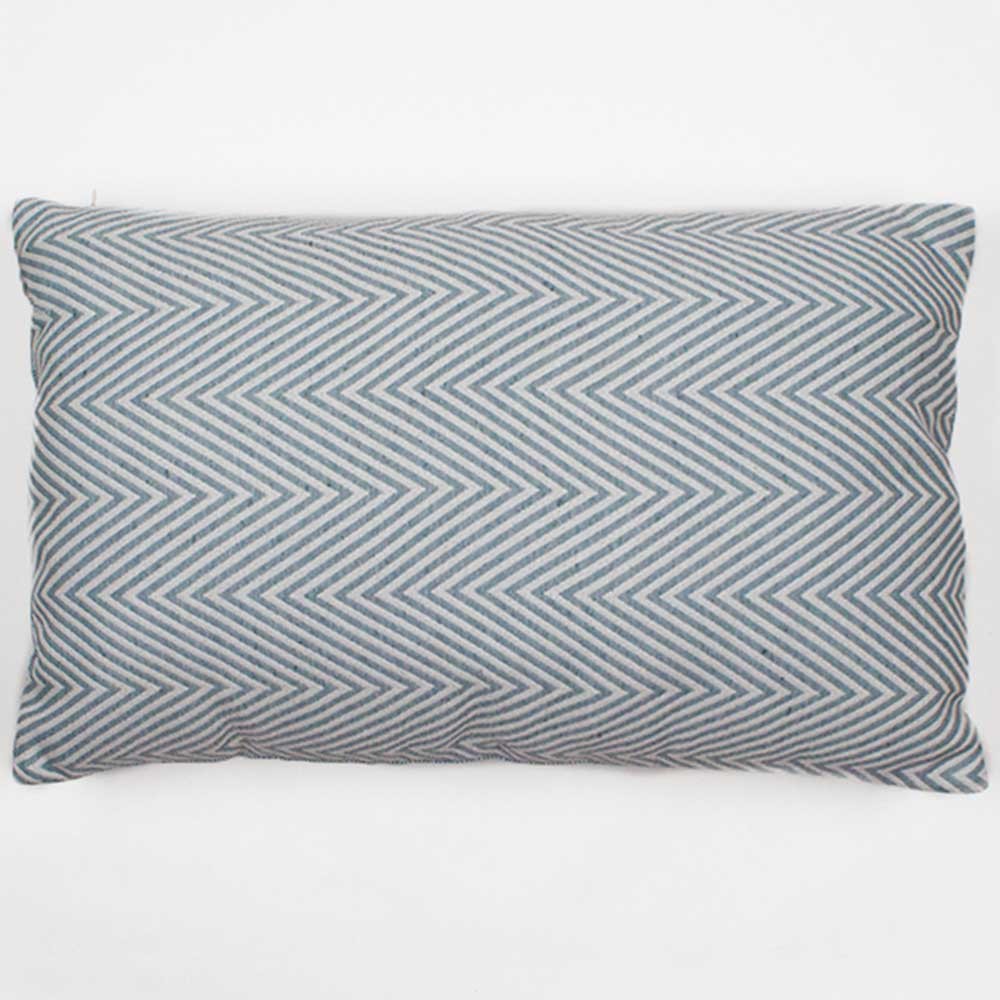Diseño original y colorido con zigzags en tonos esmeralda sobre base de color blanco, la cara trasera es de color esmeralda liso.