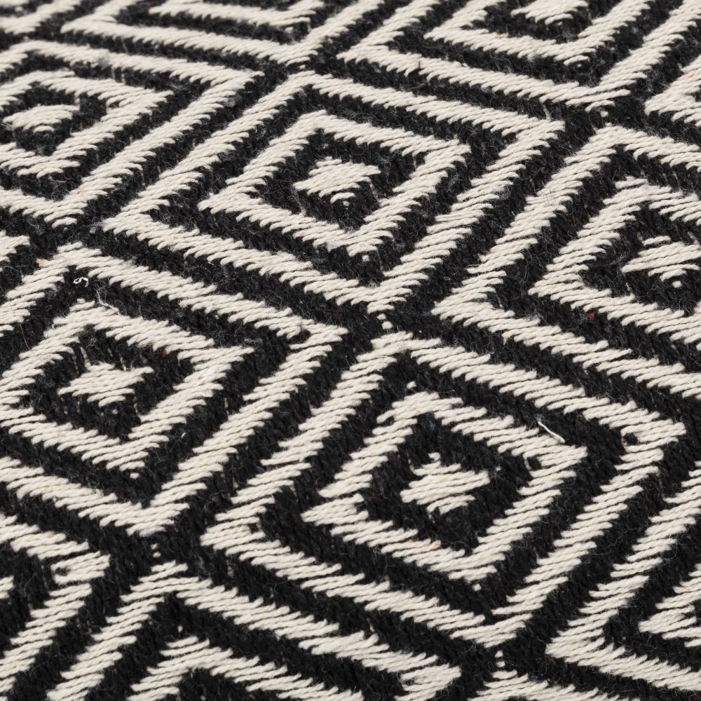 Presenta un diseño clásico y elegante de rombitos negros sobre un fondo natural, la cara trasera es de color arena liso, el complemento ideal para decorar los diferentes espacios del hogar aportando estilo.