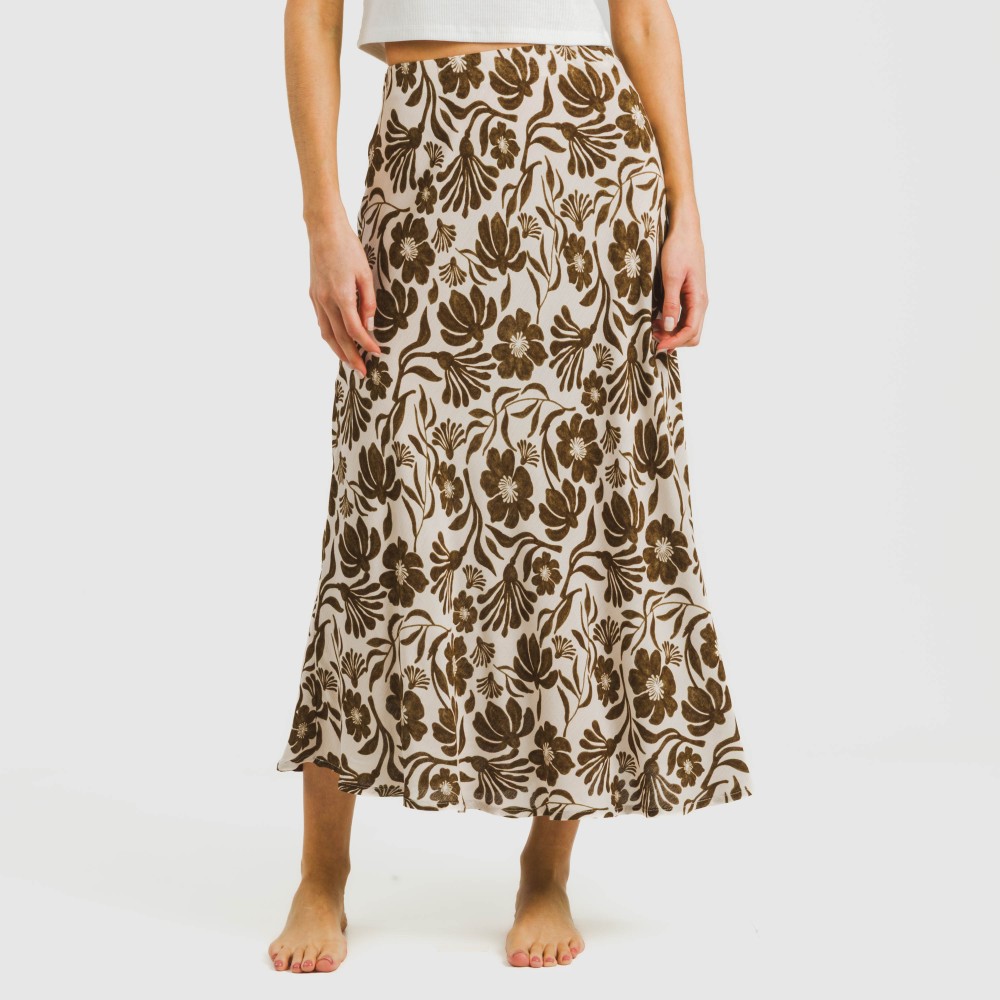 Falda bambula de corte midi con cintura elástica y tejido viscosa