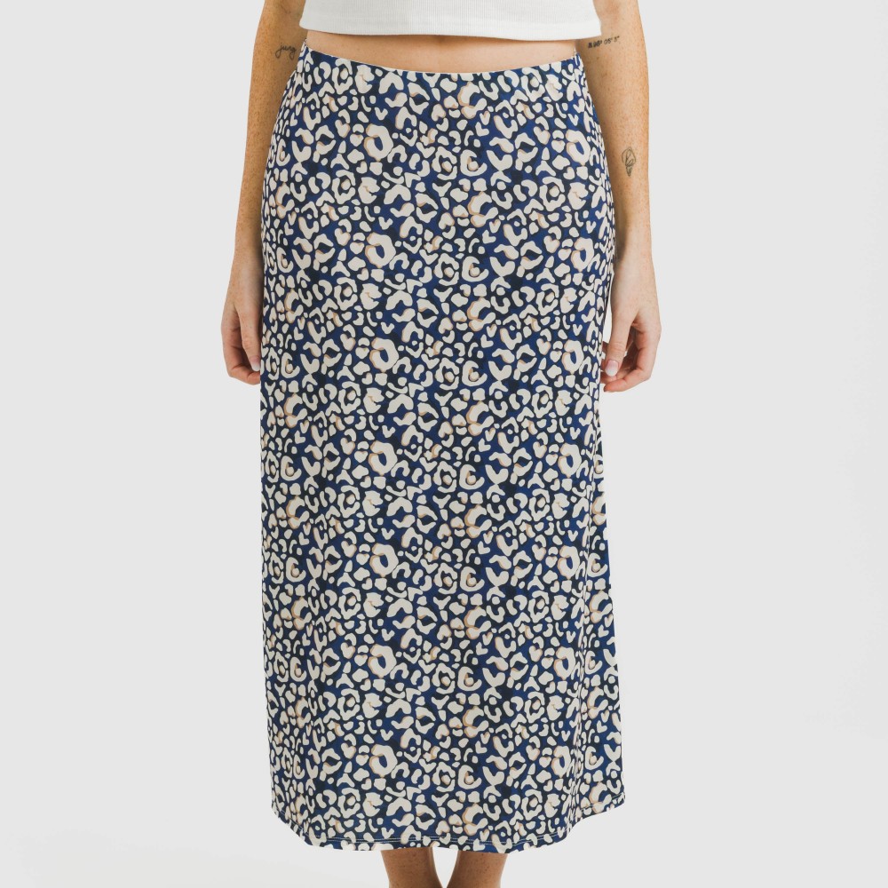 Falda midi soft modelo Milina azul marino.