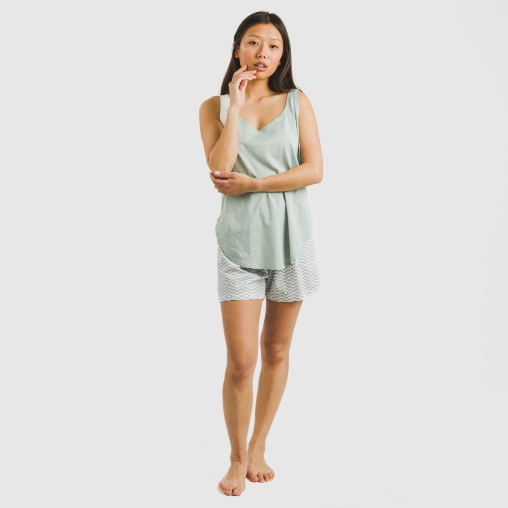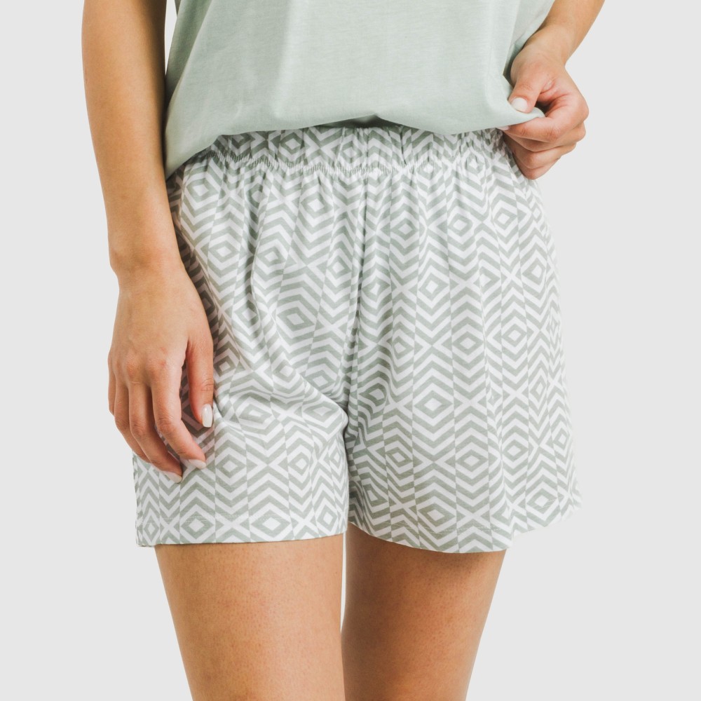 Pijama corto manga fluida algodón mujer Raya Mozarabe verde
