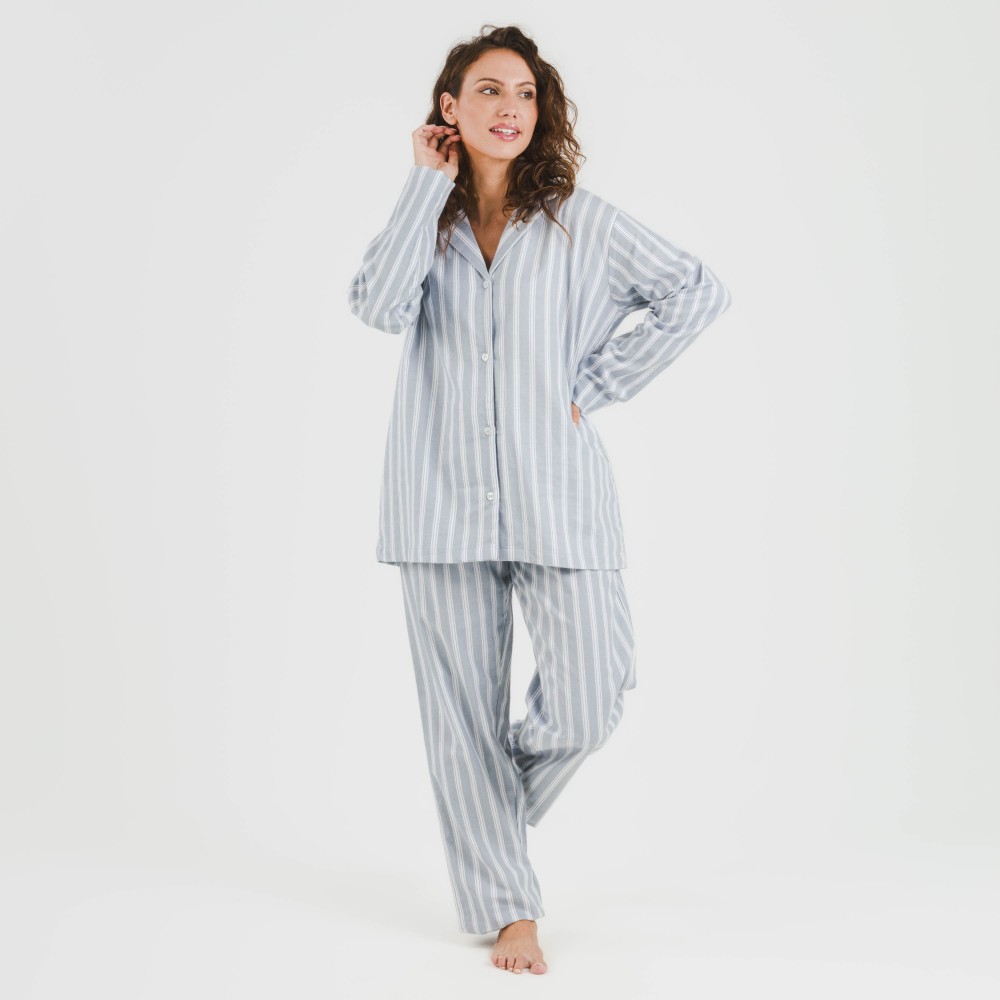 Pijama de franela con solapa para mujer modelo Raya Marsella índigo.