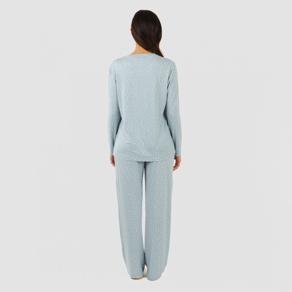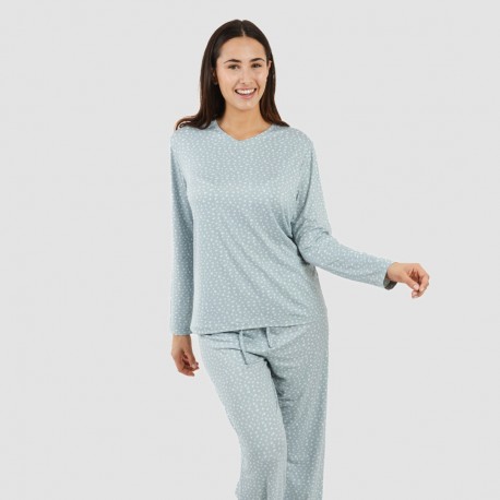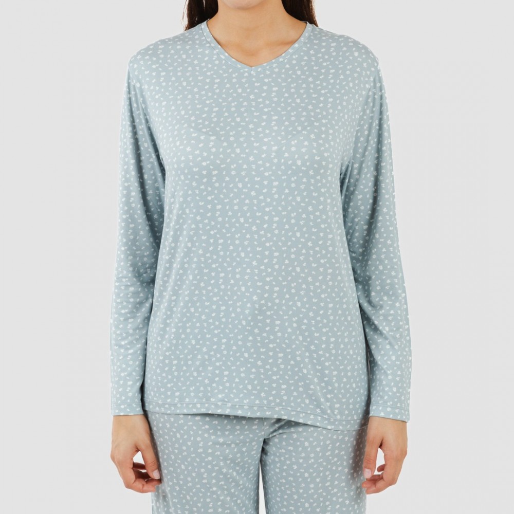 Pijama de mujer modelo Anita índigo compuesto por camiseta de manga larga y pantalón largo de tacto suave.