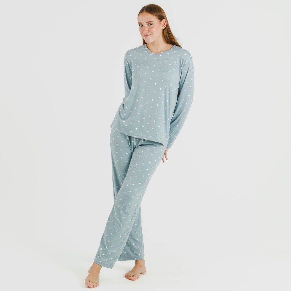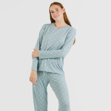 Pijama largo algodón Joy agua marina