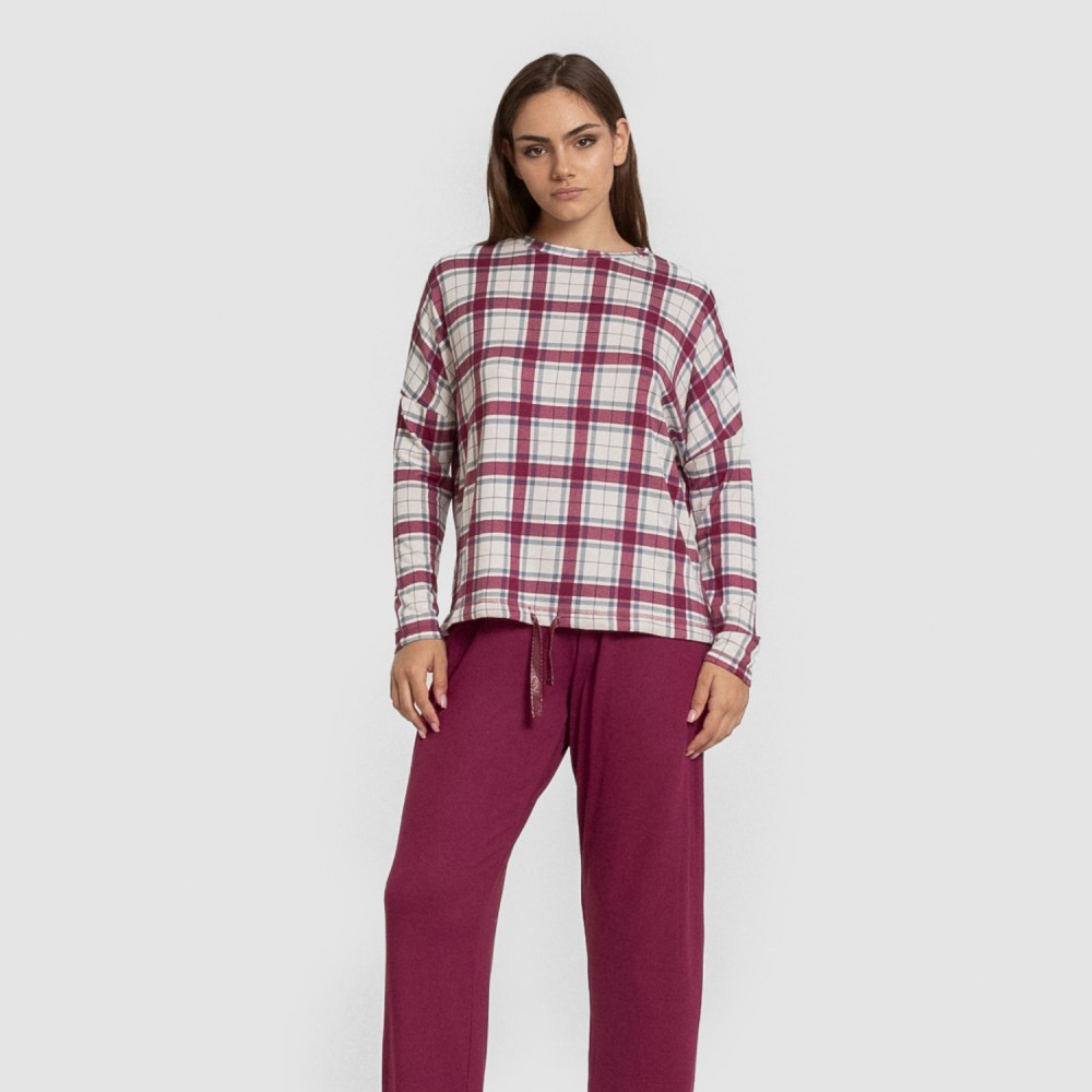 Pijama largo Secret modelo Cuadro Dalis burdeos.
