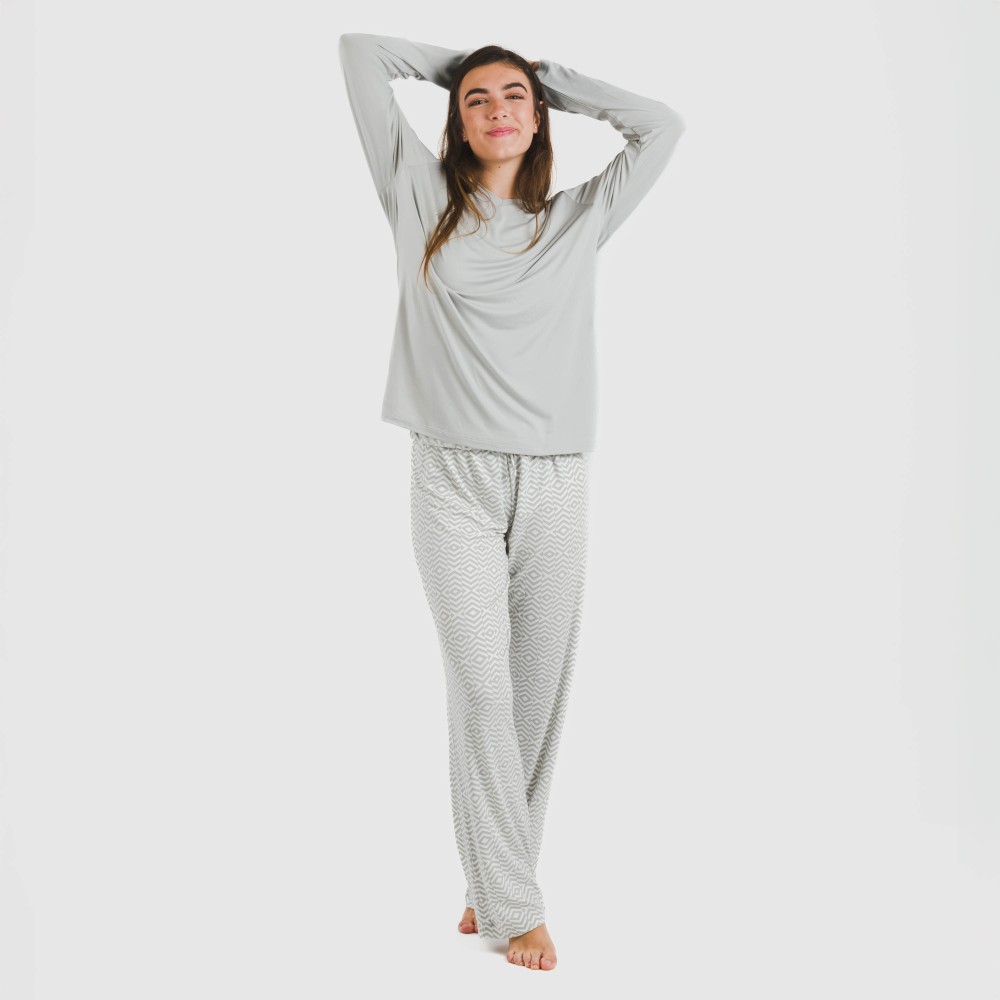 Pijama de mujer modelo Maximo gris compuesto por camiseta de manga larga y pantalón largo de tacto suave.