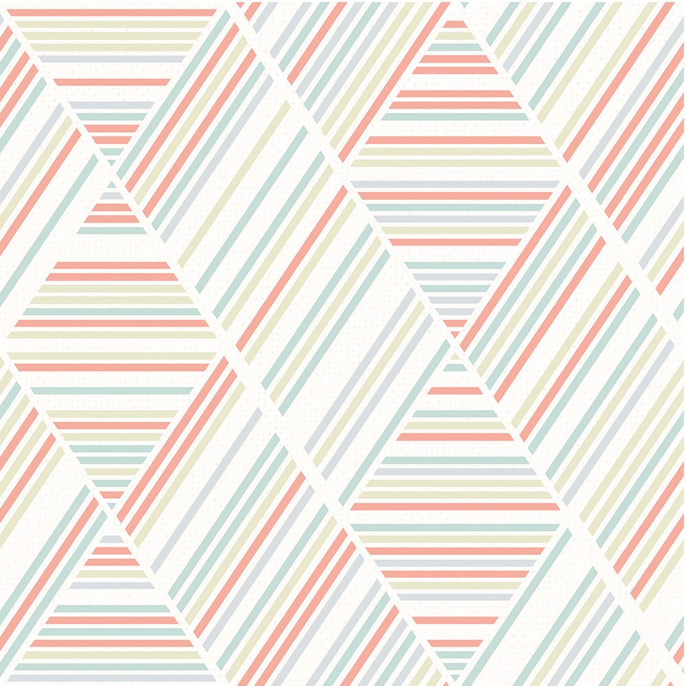 Estampado de rombos blancos con líneas horizontales y verticales en tonos naranja, verde y azul. Un diseño con clase que quedará sensacional en el comedor aportando color.