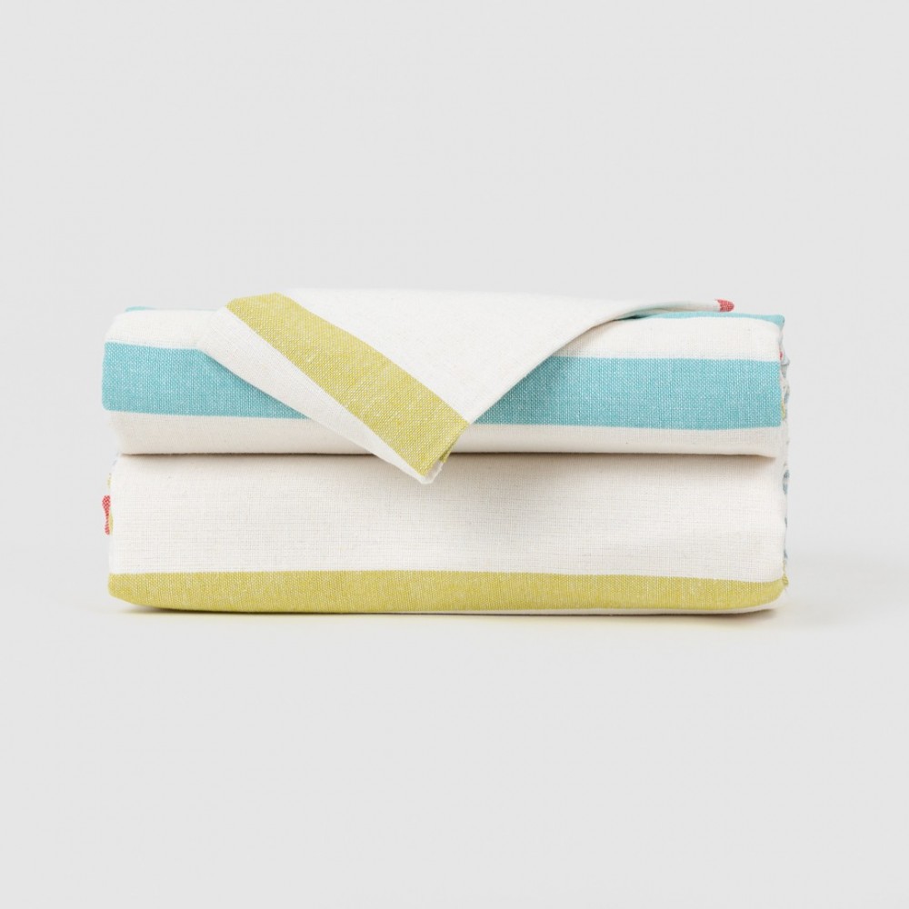 Presenta un diseño colorido y sencillo de finas rayas en tonos azul, verde y malva sobre un fondo blanco, estilo y sencillez que no pasará desapercibido.