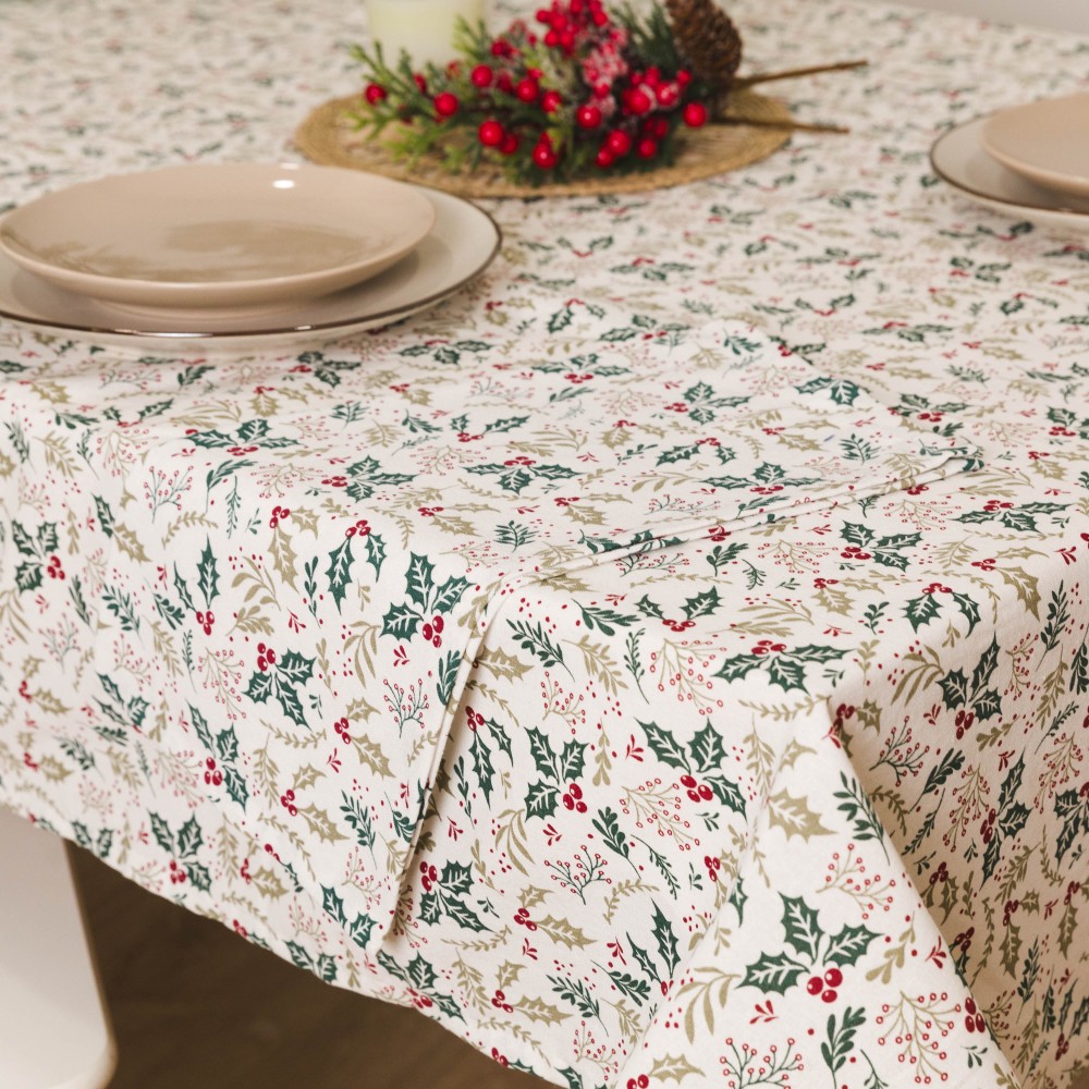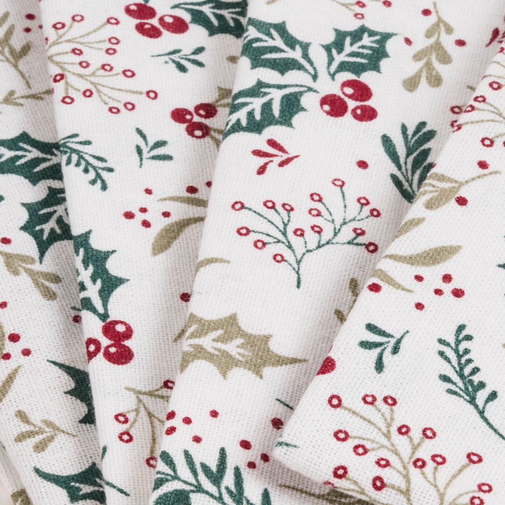 Incluye cuatro servilletas con un estampado de flores navideñas en tonos verdes y rojos sobre un fondo blanco, estas servilletas te ayudarán a dejar las típicas de papel de un solo uso y a reducir la huella medioambiental, una opción reutilizable.