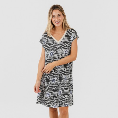 Vestido corto manga fluida viscosa bambula Teudis beige - negro